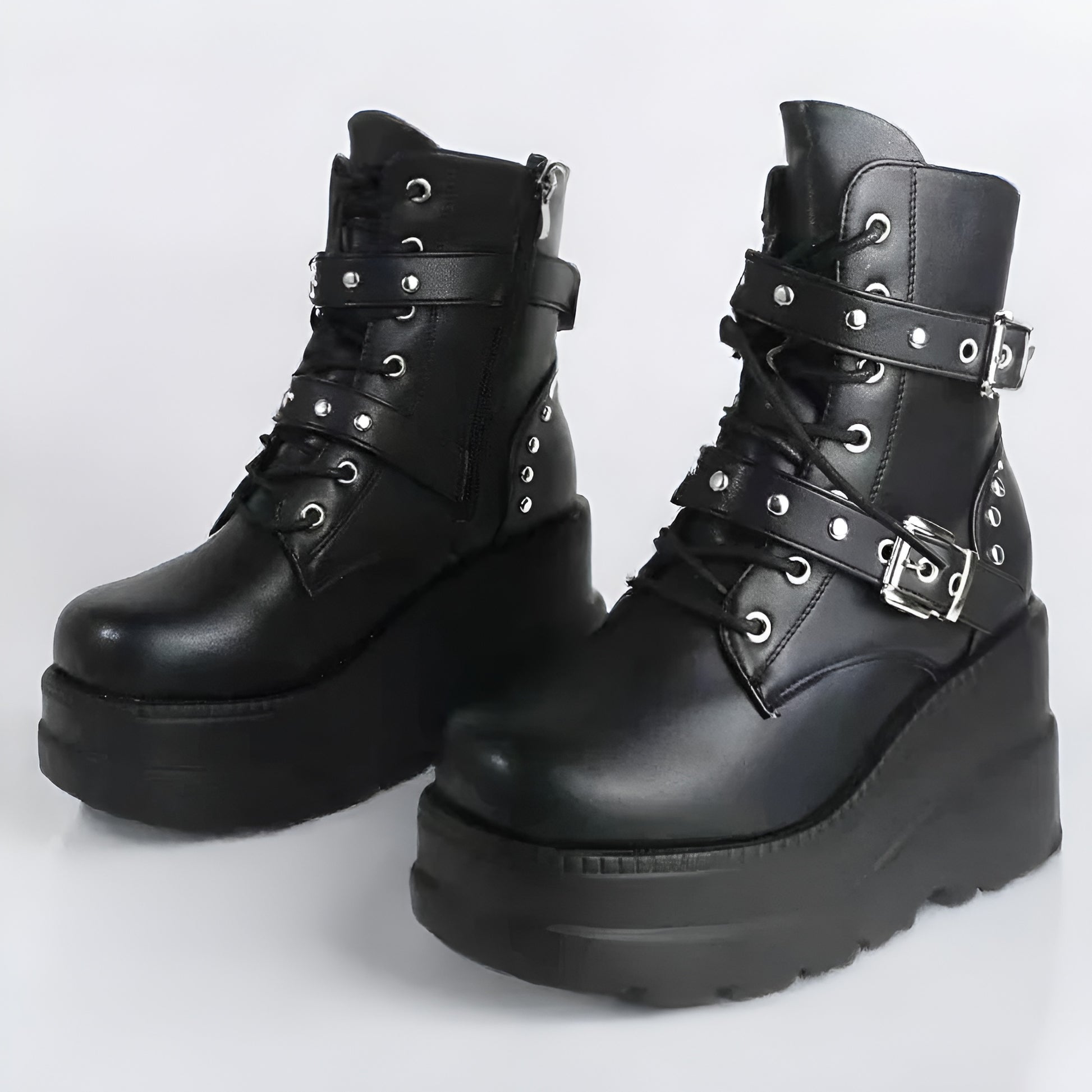 Vegan Leather Ankle Boots / Lace Up Gothic Shoes