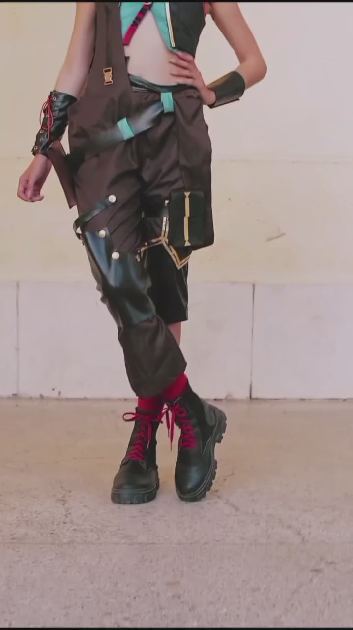 Arcane Season 2 Jinx (Powder) Cosplay Costume – Green, Grey & Gold Overalls + Vest | Game-Inspired Premium Set by Victorious