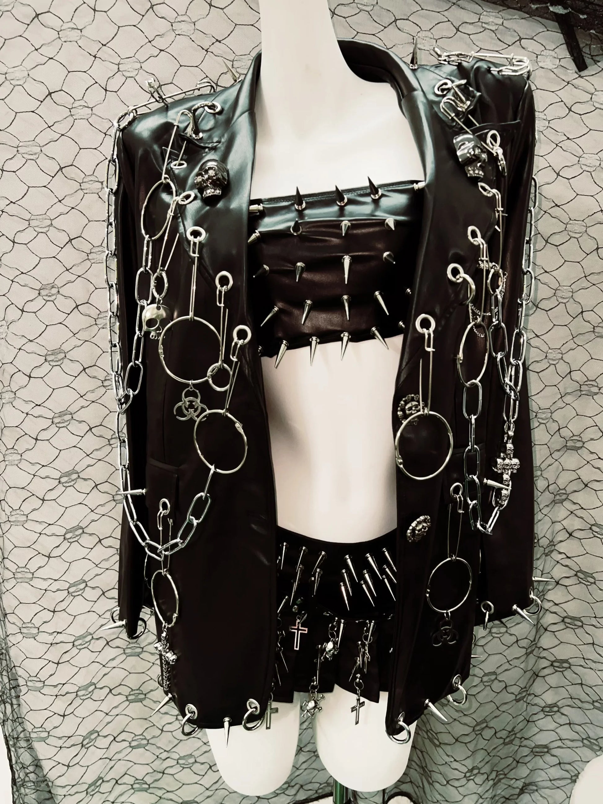 Gothic Style Outfit set with Spikes and Chains/ Full Goth Outfit